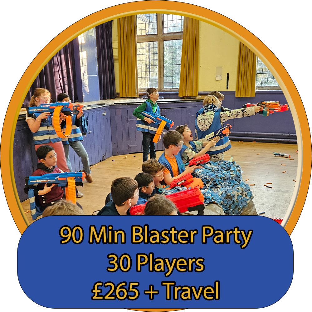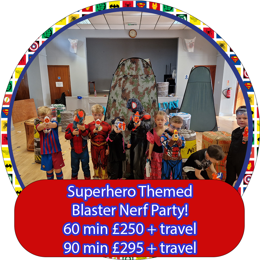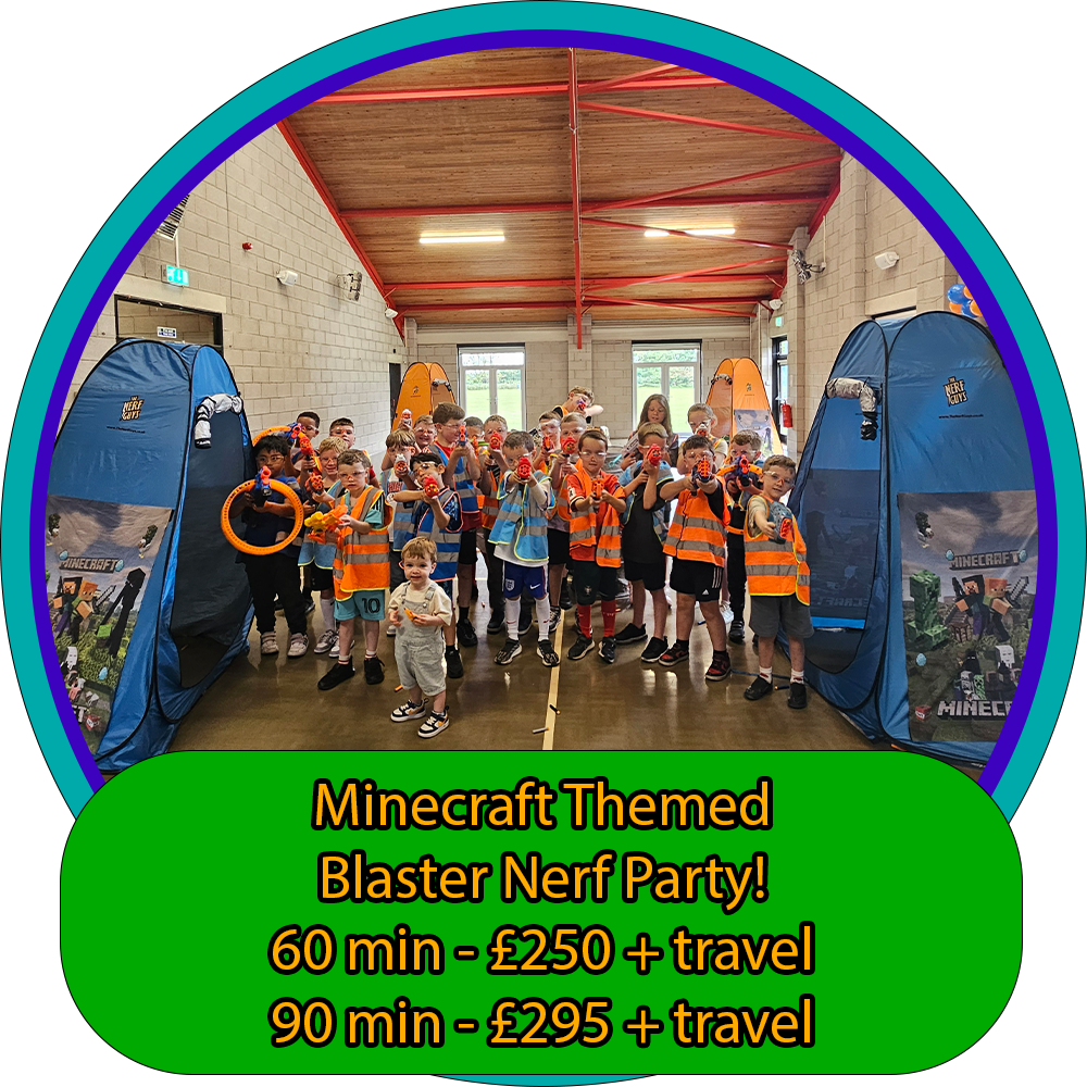 The Nerf Blaster party is incredibly fun an chaotic, some of these Nerf and X-shot guns are a little too complex for 5 year olds but they would feel right at home in your 8 year olds hands. Truly embrace the chaos with these blasters, they are fun and varied making sure everyone has an absolute blast with them. The blaster party also comes with all the nerf guns in the pistol party, this time allowing the kids to dual wield because we have enough for everyone. Blaster parties come with 60 + guns, making sure everyone is in their element.